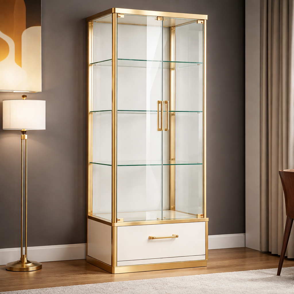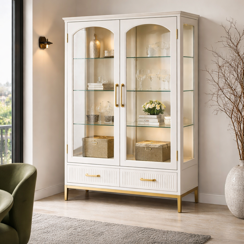 Vitrine Holz mit gehärteten Glasregalen und Metallgriffen Weiß 180x100x40 cm