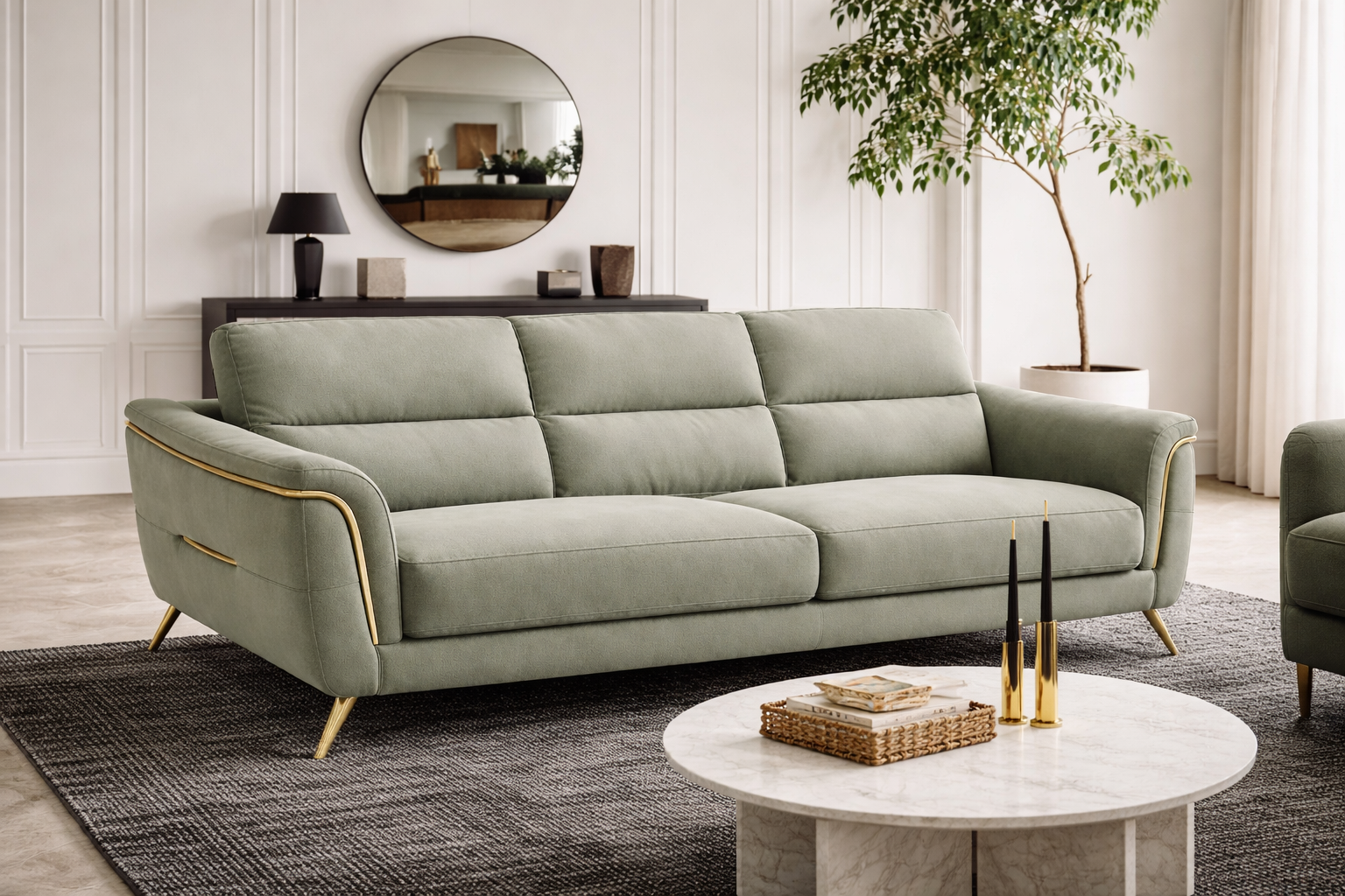 Sofa mit Sitz- und Rückenpolsterung, geeignet für den Einsatz im Wohnbereich. Bietet eine Sitzmöglichkeit für den Alltag und lässt sich in unterschiedliche Raumgestaltungen integrieren.
