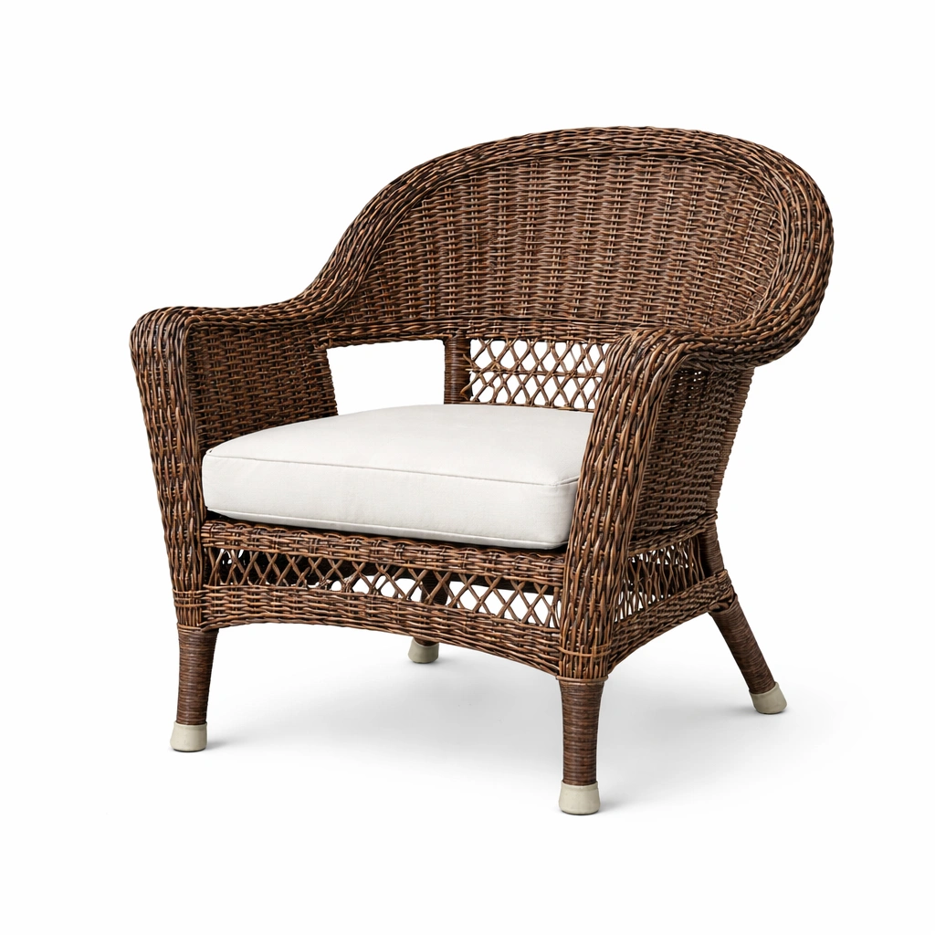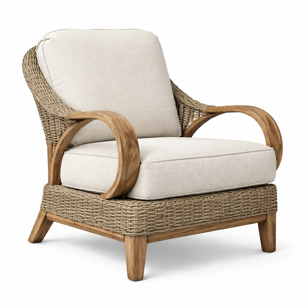 Sessel Rattan mit Holzrahmen und Polyesterkissen Beige