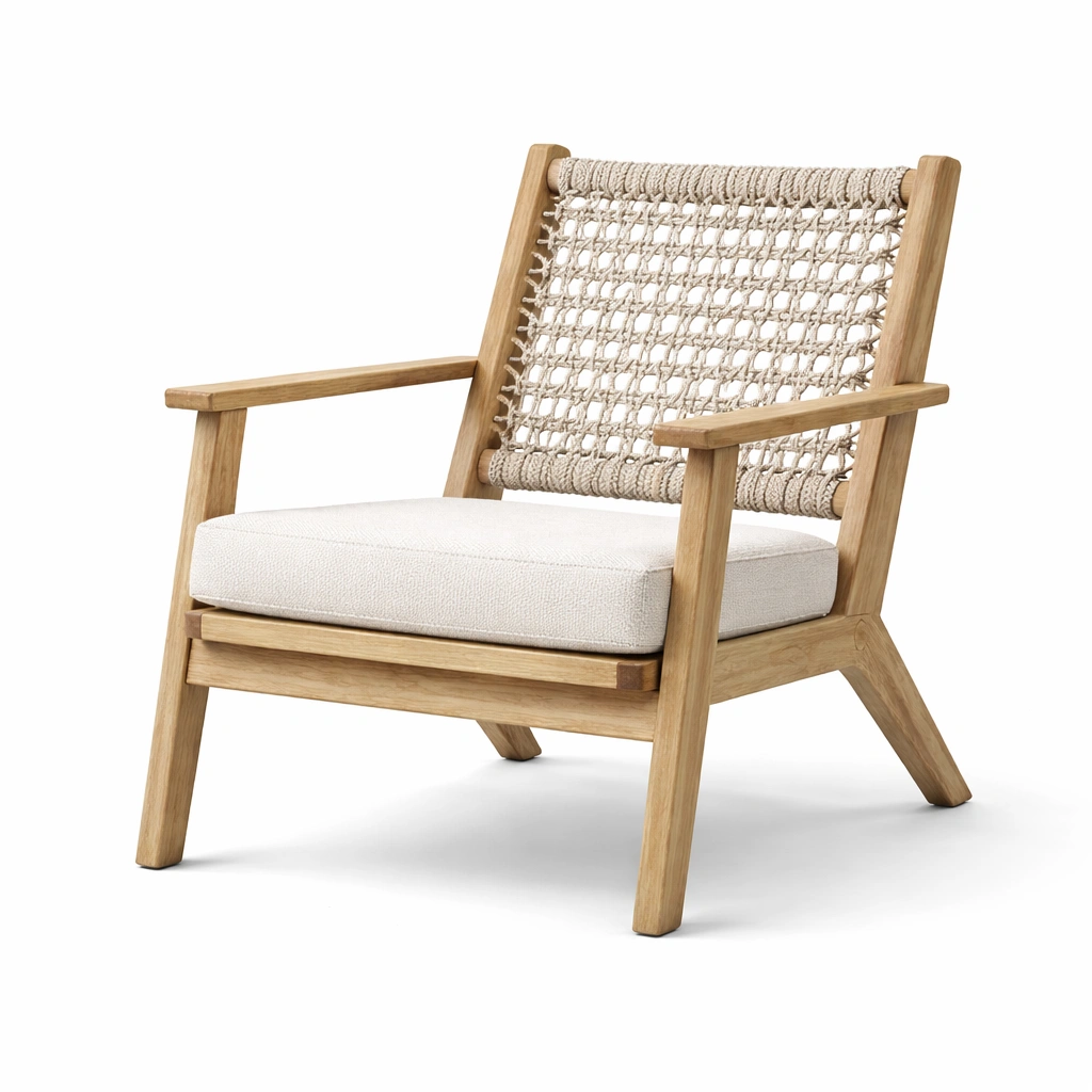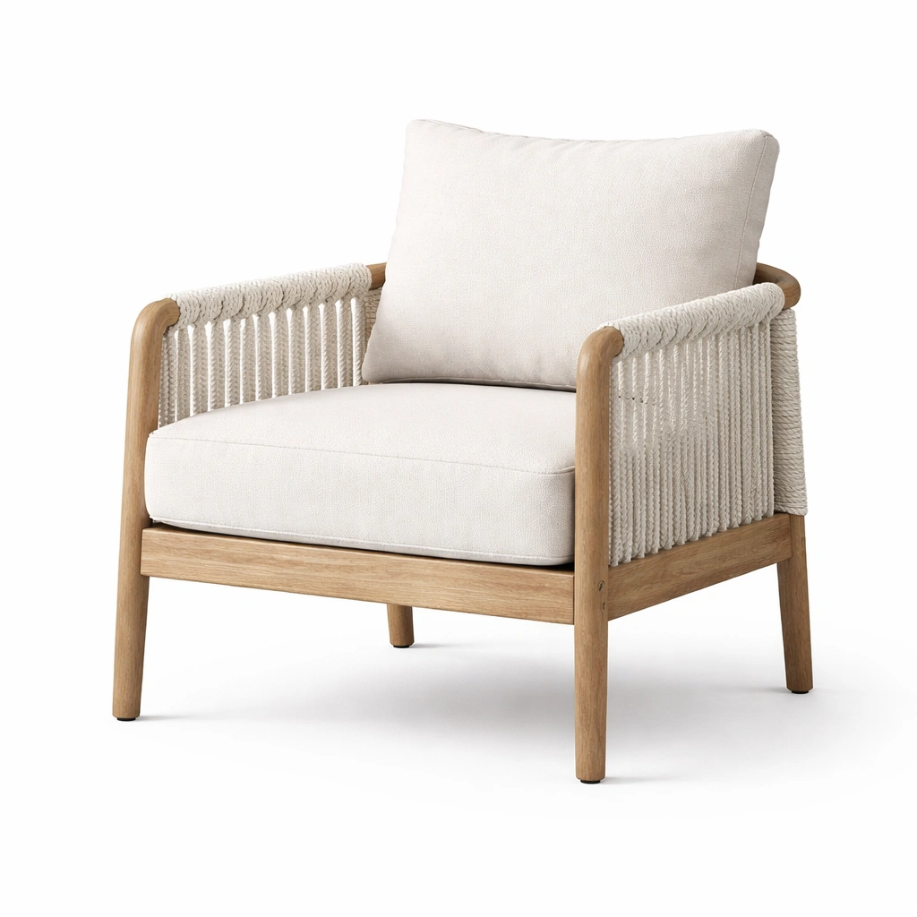 Sessel Holzrahmen mit Baumwollseil und Polyester Creme