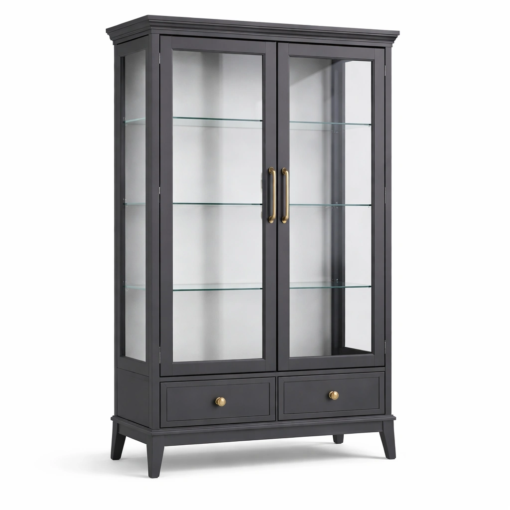 Vitrine Holz Glas Grau mit Glastüren
